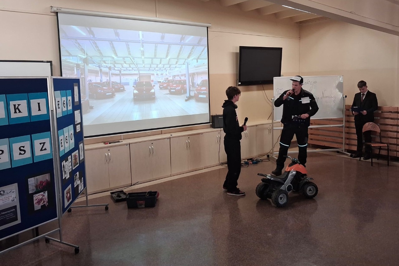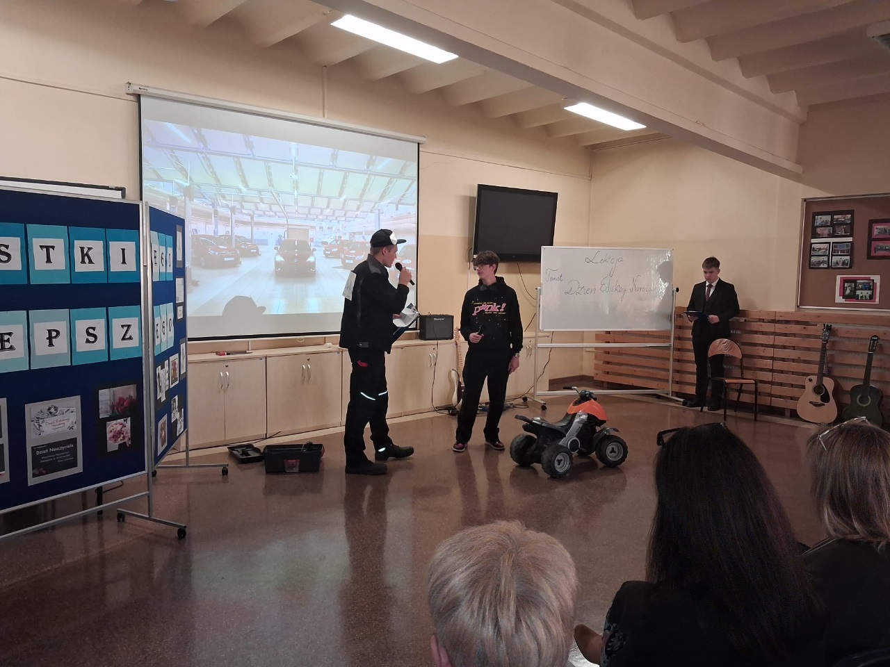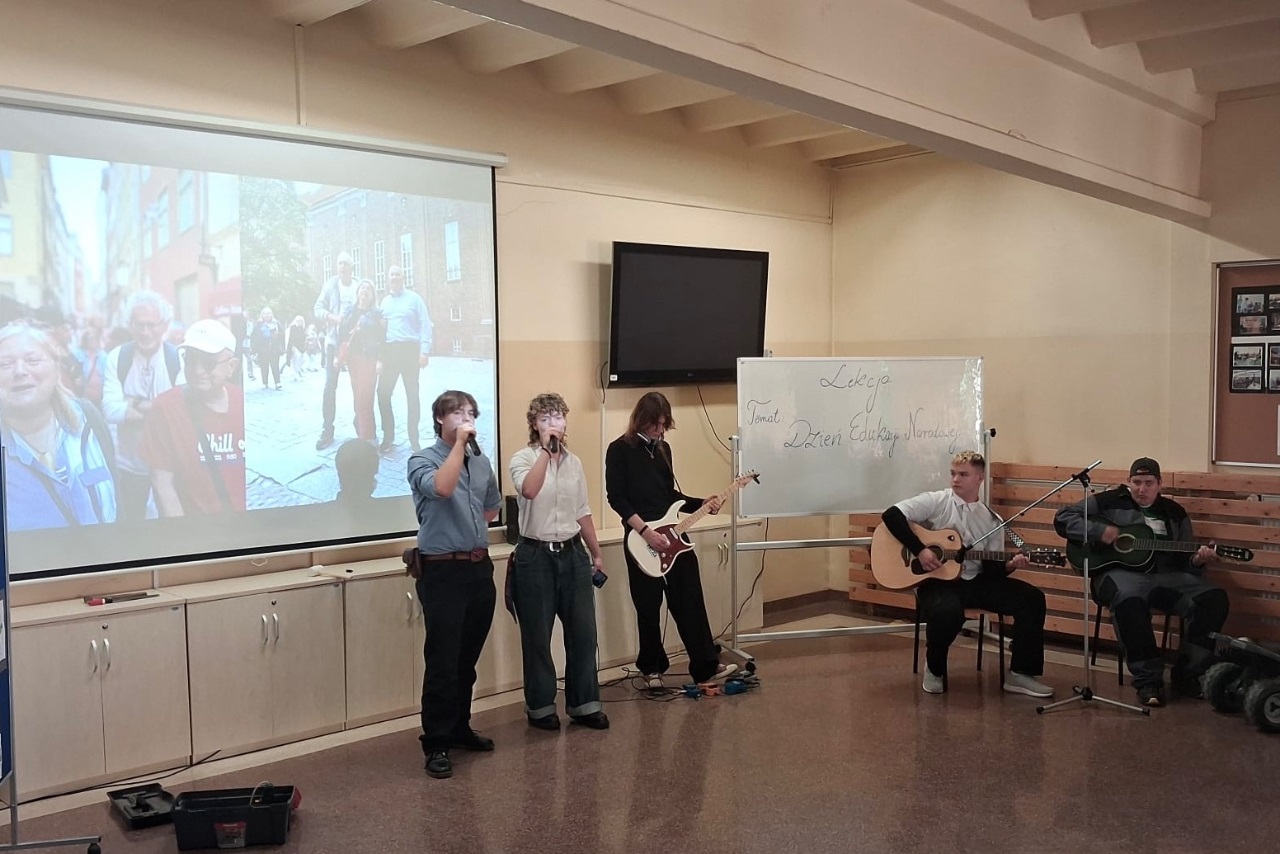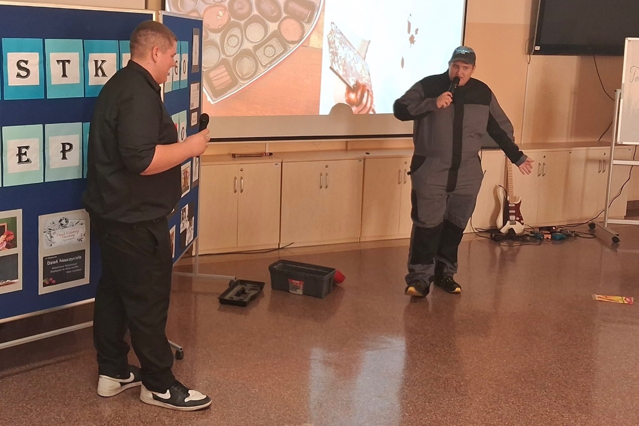 10 października w Zespole Szkół Samochodowych w Gdańsku odbyły się uroczyste obchody Dnia Edukacji Narodowej. To wyjątkowe święto było doskonałą okazją, aby podziękować wszystkim nauczycielom oraz pracownikom szkoły za ich codzienny trud, cierpliwość i pasję, z jaką przekazują wiedzę kolejnym pokoleniom uczniów. Młodzież przygotowała krótki, ale pomysłowy program artystyczny, który z humorem i ciepłem nawiązywał do szkolnej rzeczywistości. Uroczystość rozpoczęła scenka z woźną i konserwatorem, którzy w rozmowie dzielili się refleksjami o współczesnej szkole, nauczycielach i uczniach. Ich pełne serdeczności i humoru spostrzeżenia wywołały wiele uśmiechów na twarzach publiczności. Następnie widzowie przenieśli się do warsztatu samochodowego, gdzie odbył się nietypowy „przegląd ucznia” – sprawdzano stan jego wiedzy, motywacji i zapału do nauki. Zabawna inscenizacja została nagrodzona gromkimi brawami. Na zakończenie uroczystości wybrzmiała piosenka „Życzymy sobie i Wam” z repertuaru Męskiego Grania, wykonana przez uczniów naszej szkoły - Emilii Sienicy i Tymona Przerwy przy akompaniamencie gitarzystów – Nikity i Timofiego. W tle pojawiły się slajdy ze zdjęciami nauczycieli i pracowników szkoły, a wszyscy zaproszeni goście otrzymali słodkie niespodzianki i samodzielnie wykonane przez uczniów "belfrojazdy". Piątkowe spotkanie zakończyło wystąpienie Pani dyr. mgr inż. Iwony Orłowskiej, która osobiście złożyła wszystkim życzenia z okazji DEN i wręczyła Nagrody Dyrektora wyróżnionym nauczycielom i pracownikom szkoły. Był to dzień pełen radości, wzruszeń i serdeczności. Dziękujemy wszystkim, którzy zaangażowali się w przygotowanie uroczystości (Laura, Emilia, Borys, Fabian, Krzysztof, Jakub, Tymon, Wojciech, Szymon, Nikodem, Igor, Nikita, Timoffi i Mateusz) – a przede wszystkim naszym nauczycielom i pracownikom szkoły, którzy każdego dnia z pasją wspierają rozwój młodych techników!