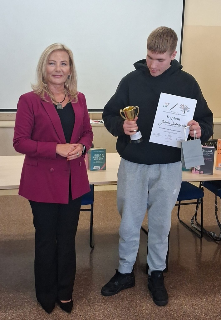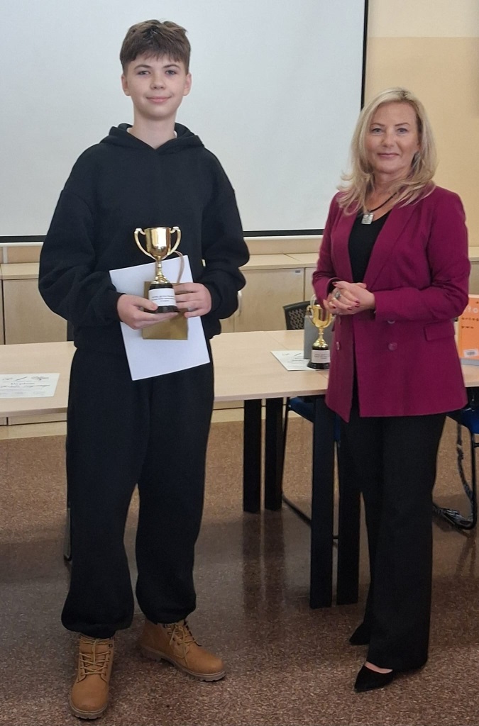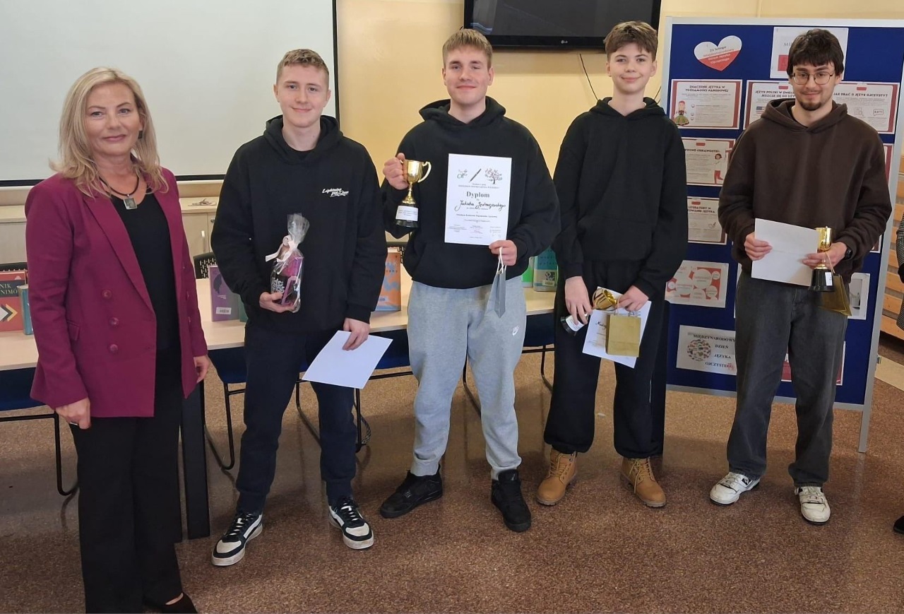 Na zwycięzców czekały atrakcyjne nagrody: puchary, dyplomy oraz bony do sklepu Empik. Wręczenie nagród odbyło się w obecności Pani Wicedyrektor Aliny Barsowskiej-Sołobodowskiej i było zwieńczeniem dnia pełnego emocji oraz językowych wyzwań.